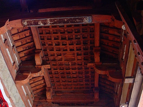 藻井:天花通常是平面的,而建造成穹窿形时,则称之为藻井。藻井通常位于室内的上方,呈伞盖形,也有方形、多边形或圆形凹面,由细密的斗拱承托,象征天宇的崇高。藻井上一般都绘有彩画、浮雕,并施以绚丽彩画,是一种高级天花,多用在宫殿、寺庙中的宝座、佛坛上方最重要部位。