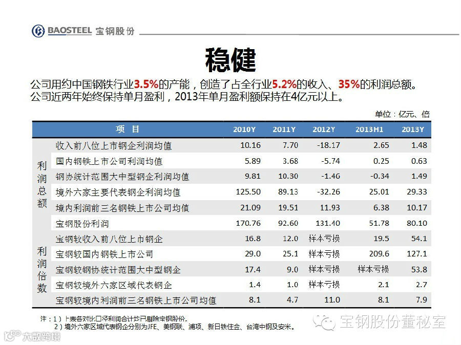 宝钢股份2014年4月分析师说明会业绩篇