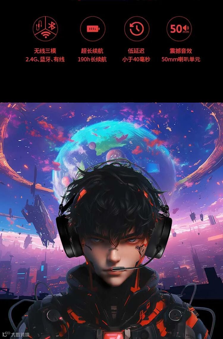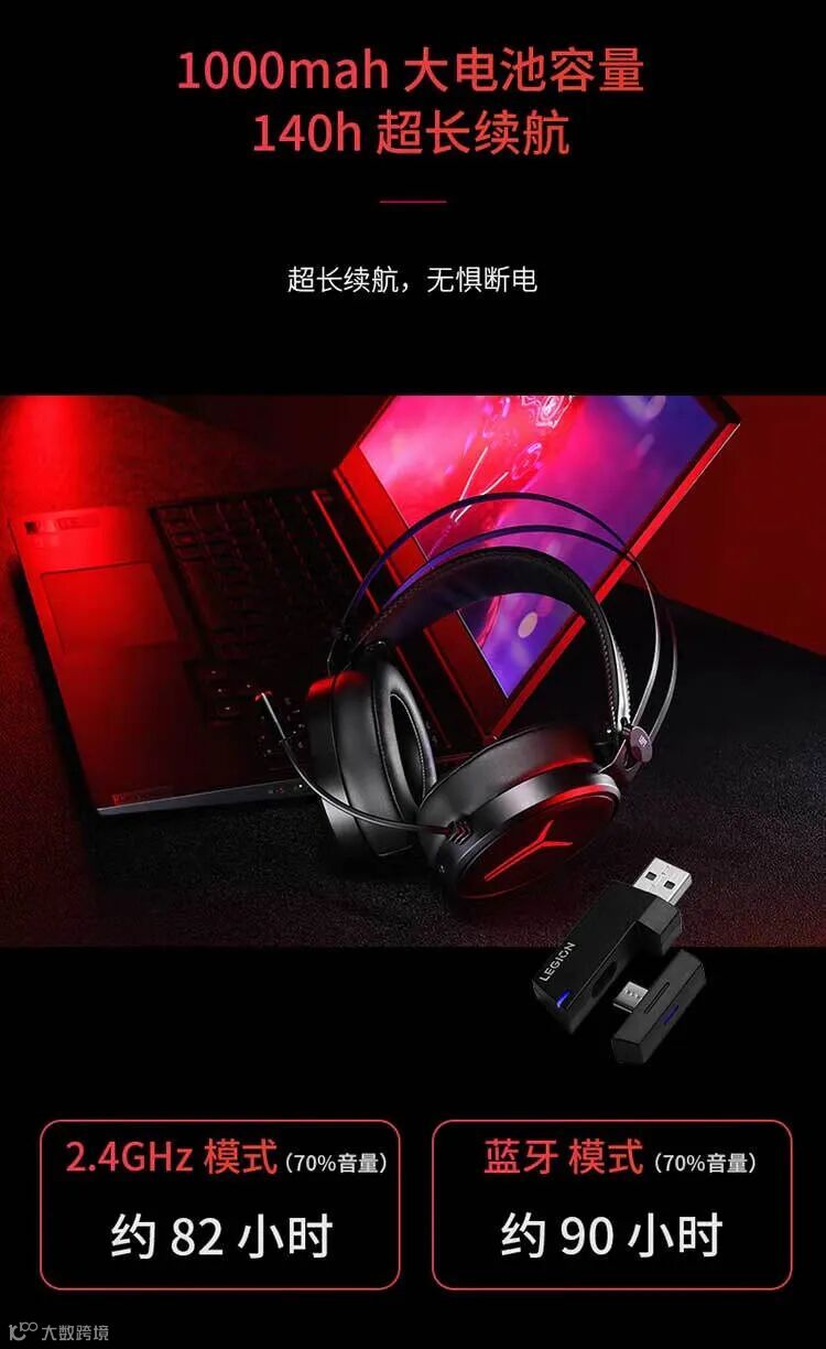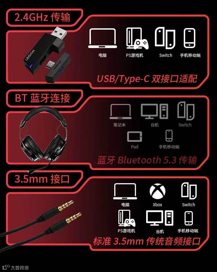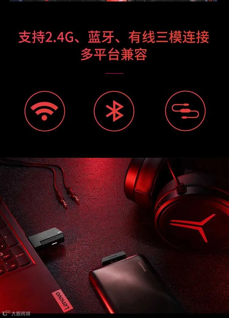 联想(Lenovo)拯救者Y360 2.4G有线无线蓝牙游戏耳机三模头戴式游戏电脑电竞耳机黑色/白色(20PCS/箱)