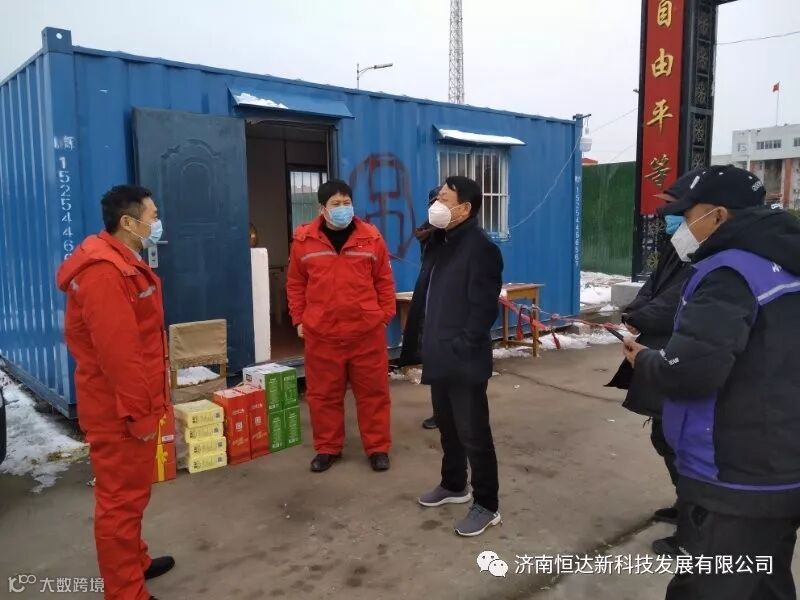 2月15日上午,济南恒达新科技发展有限公司张峰副总经理带领公司驻地人员给东营市东营区立新村基层防疫人员送去了一批防疫物资,同时也将关怀送进了每一位防疫人员的心里。张总一行受到了立新村禹书记及村委等人的热情接待。