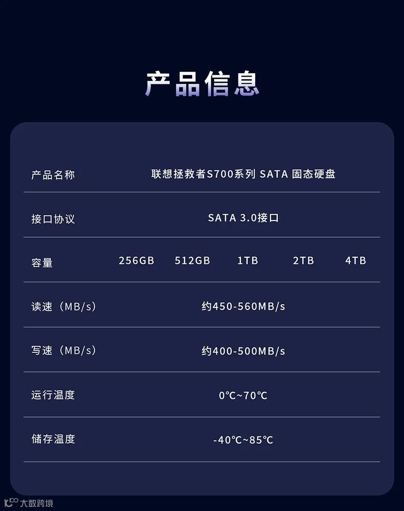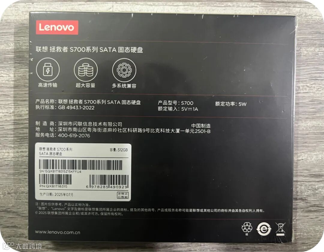 联想拯救者S700固态硬盘SATA3接口512G 1T台式机笔记本扩容ssd(50PCS/箱)