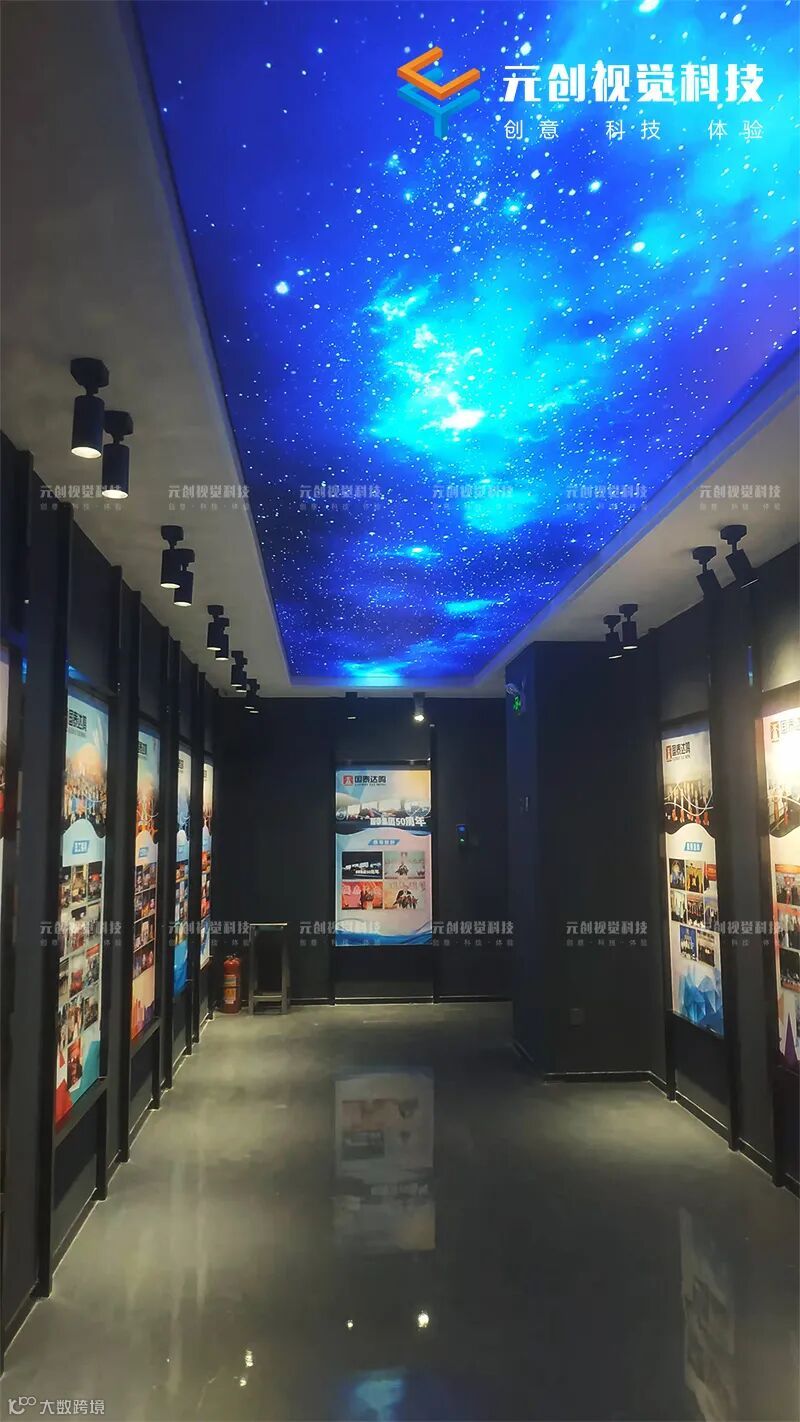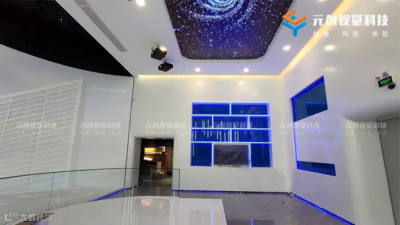 。展厅整体以蓝色为主色调,并结合星光穹顶,重在突出展厅的科技感。