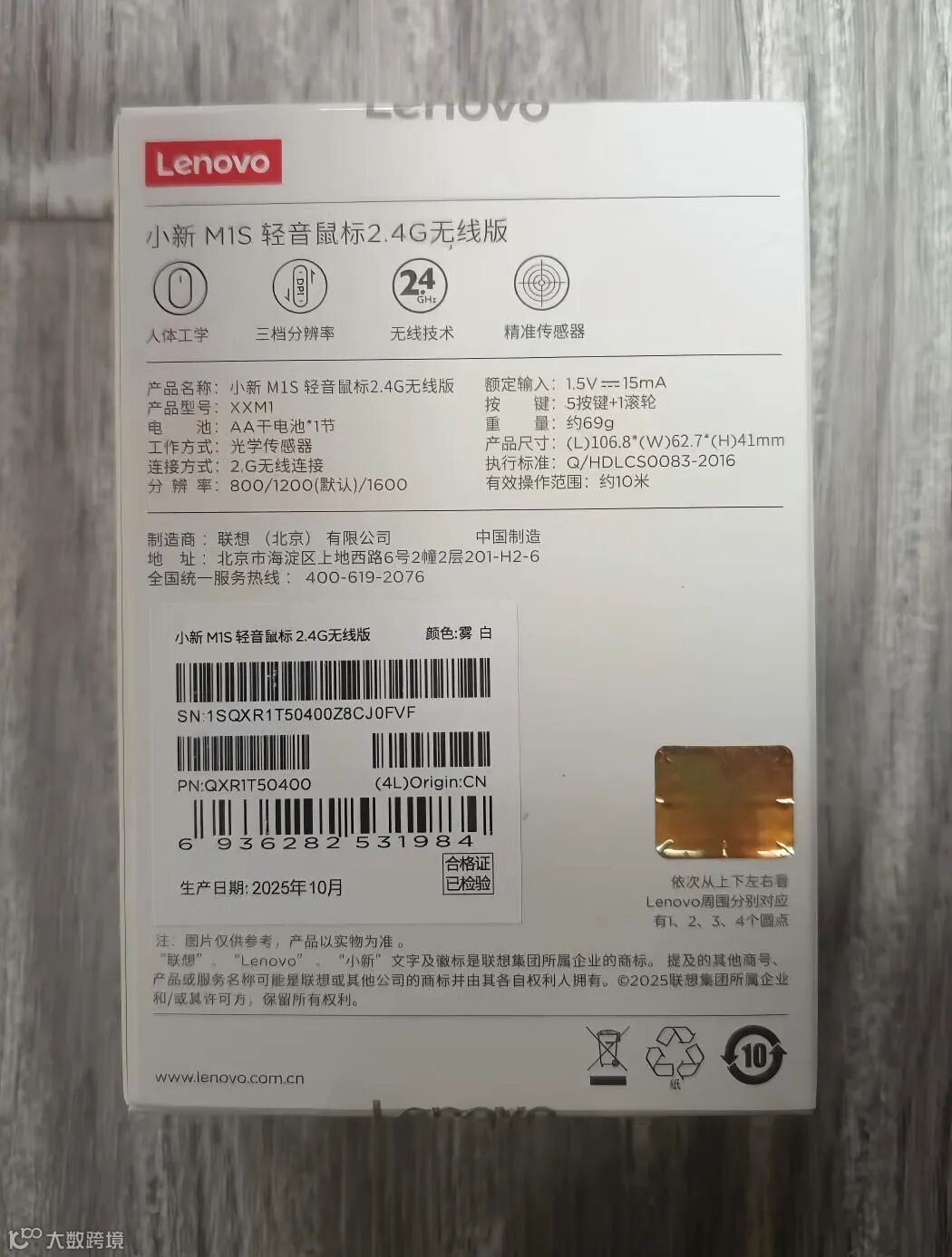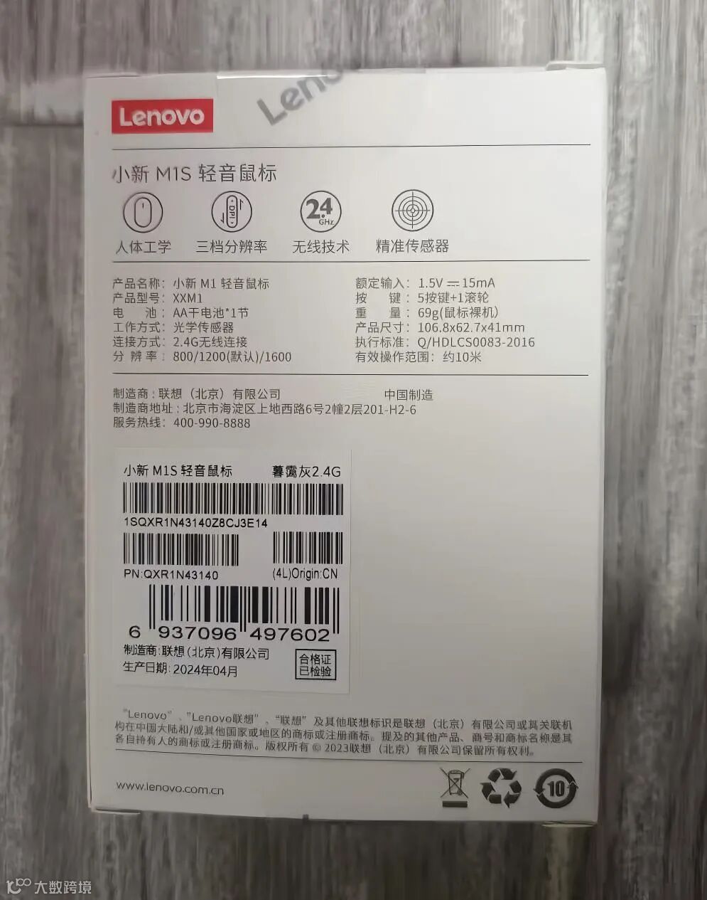 联想(Lenovo)小新2.4G无线鼠标M1S 商务办公 轻音无线鼠标 侧键 人体工学设计 笔记本台式机通用 暮霭灰/雾白(50PCS/箱)