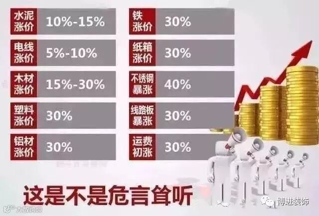 最近装修材料不断涨价的消息已拉紧了一拨人的神经,纸箱、铝材、铁、塑料、不锈钢、油漆、煤、水泥原材料截至目前已上涨30%-50%,装修材料的涨价已经从空穴来风变成狂风暴雨。