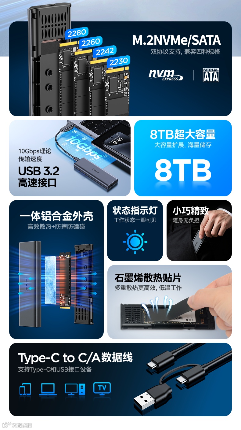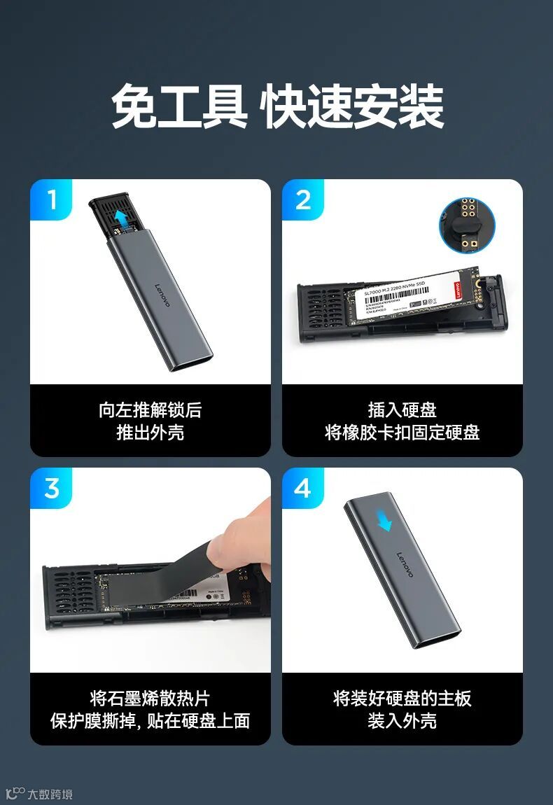 联想移动硬盘盒M.2笔记本台式外接机械固态M.2 NVME/Sata双协议LN12硬盘盒(60PCS/箱)