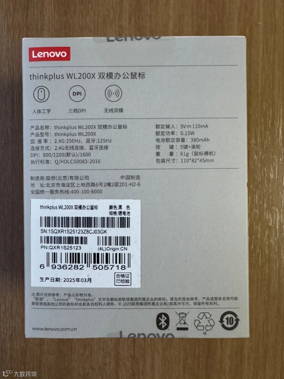 ThinkPad联想ThinkPad(thinkplus) WL200X 无线蓝牙双模鼠标 商务办公鼠标 适用笔记本电脑、台式机(60PCS/箱)
