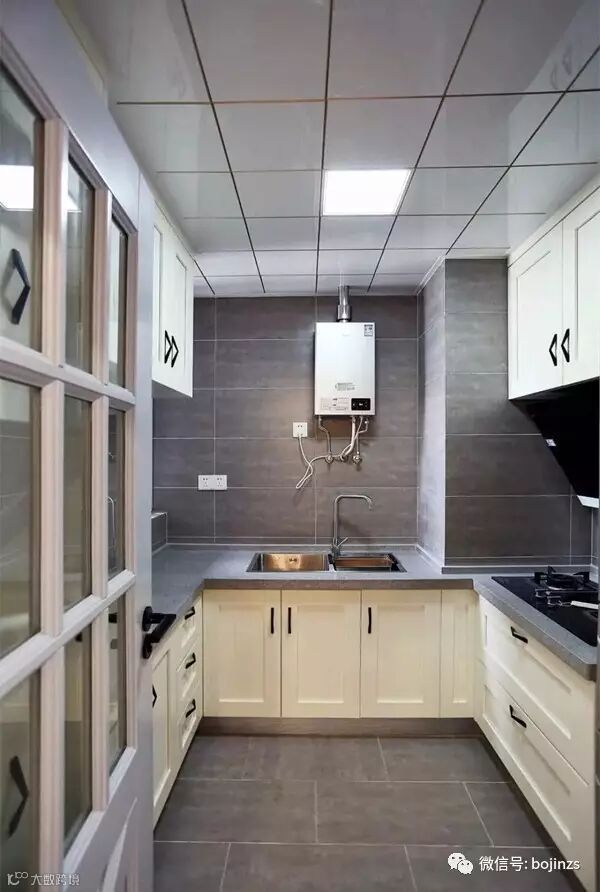 U字形的厨房台面,再搭配灰白的色调,显得很大气、难看;