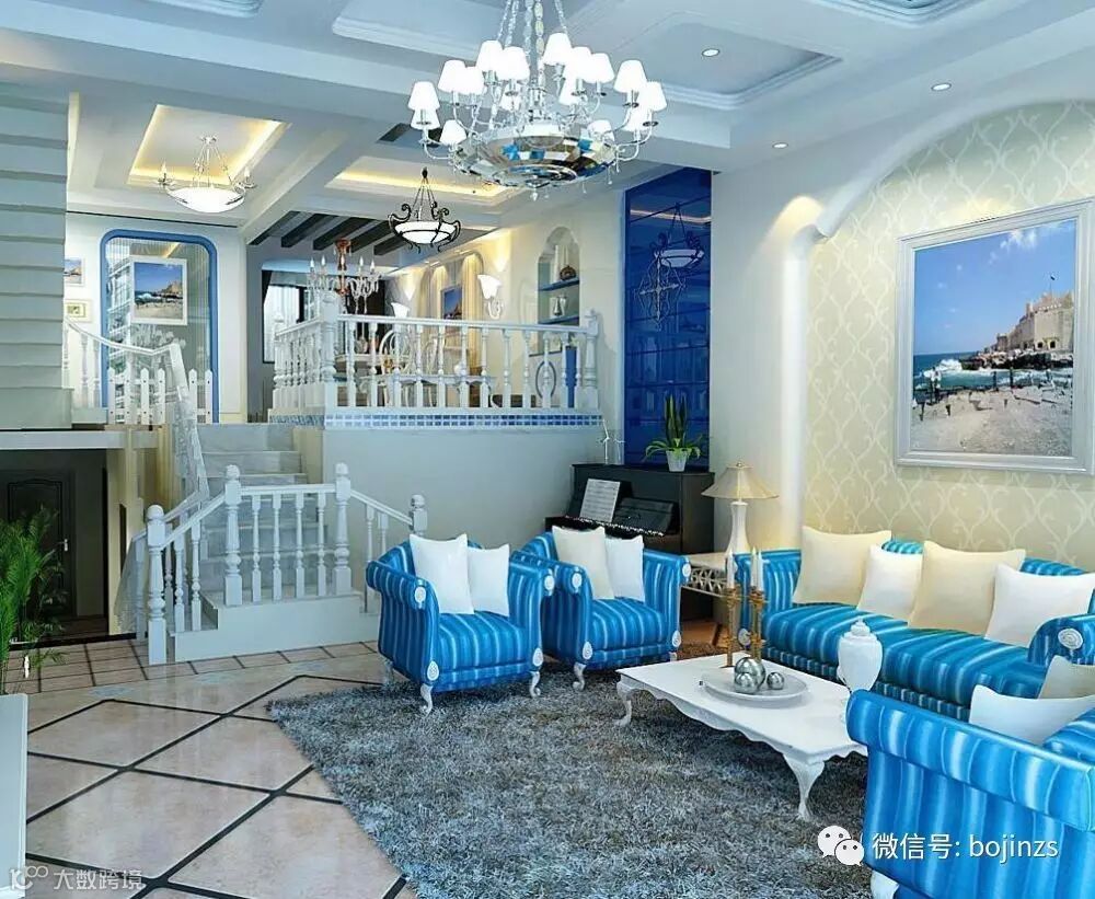 (1)地中海风格按照地域自然出现了三种典型的颜色搭配: