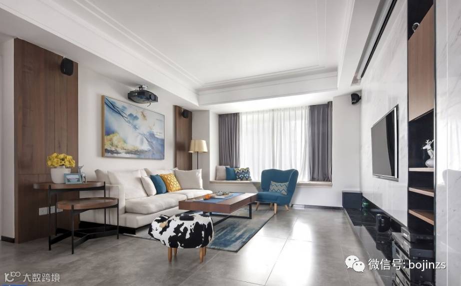 (3)起居室一般较客厅空间低矮平和,选材上也多取舒适、柔性、温馨的材质组合,可以有效地建立起一种温情暖意的家庭氛围,电视等娱乐用品也放在这一空间中。