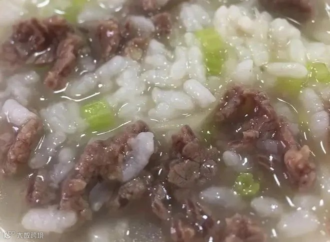 做法:将牛肉洗净、剁成茸,加入黑胡椒粉、盐、淀粉,拌好。将萝卜缨、生姜洗净、切碎、拌匀备用。将大米淘洗干净、倒入砂锅,加入适量冷水,大火煮开后,倒入牛肉末,搅散,改小火煮25分钟。待米粒开花翻滚时,加人萝卜缨,煮开,加入盐、芝麻油调味,盛出,等粥温热时便可食用了。