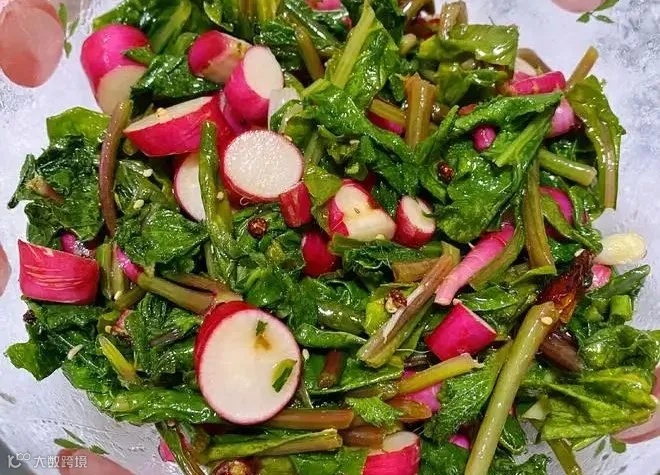 以后再买萝卜时遇到上面带的有萝卜缨,可别扔了,在吃腻了肉类时,来上这么一盘爽口刮油的凉菜也十分舒适呢!