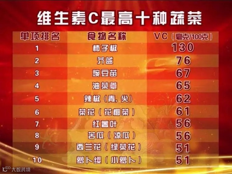 萝卜缨中的维生素C含量较高,为51mg/100g,在蔬菜的维C排行榜中位列第十。
