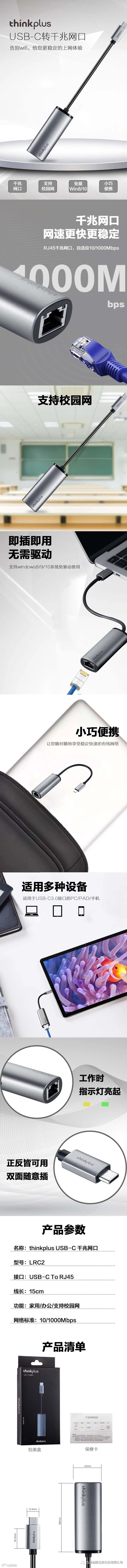 导读:联想Thinkpad Type-C转千兆网口LRC2