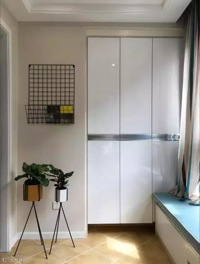 这块添加了一个飘窗台,方便替换鞋子又增添了一些休闲意味在里面。细脚置地花架配以孔雀竹芋使业主家一进门便能感觉到一股清爽便迎面而来。