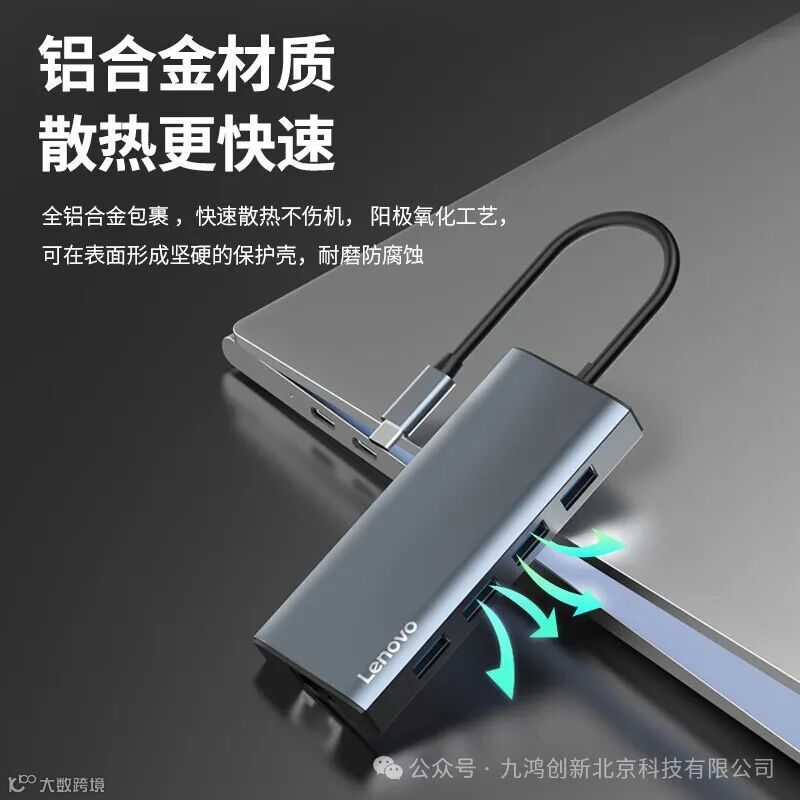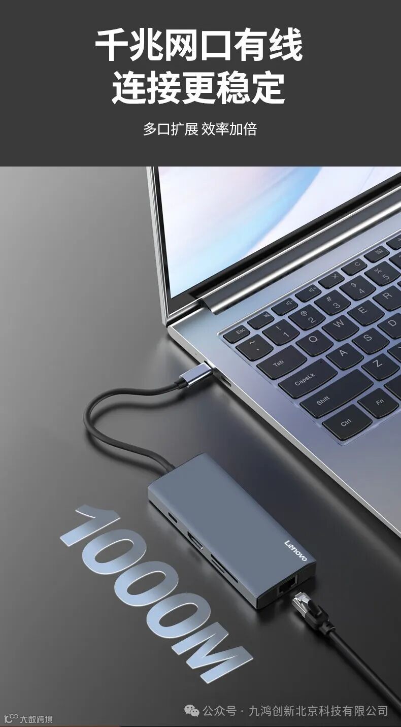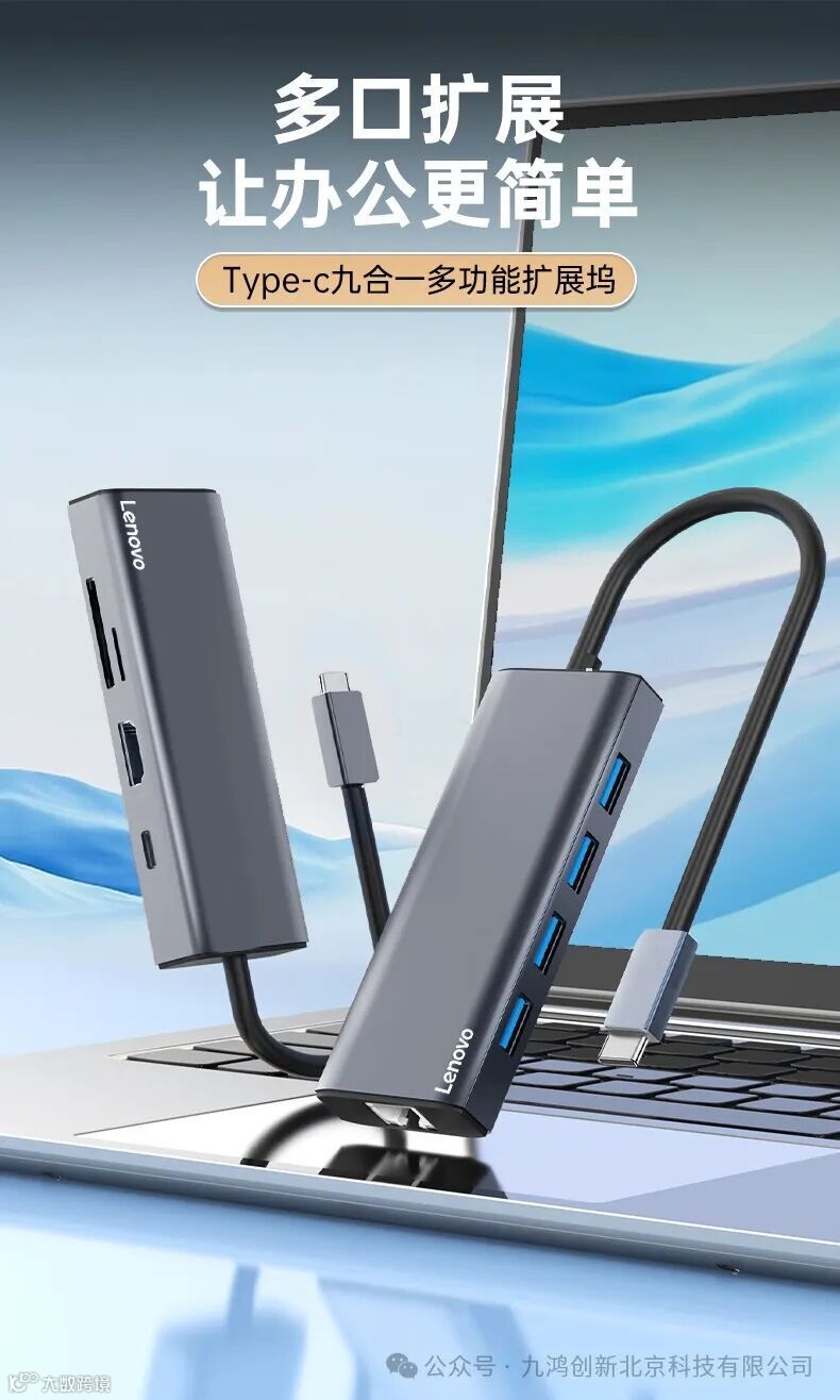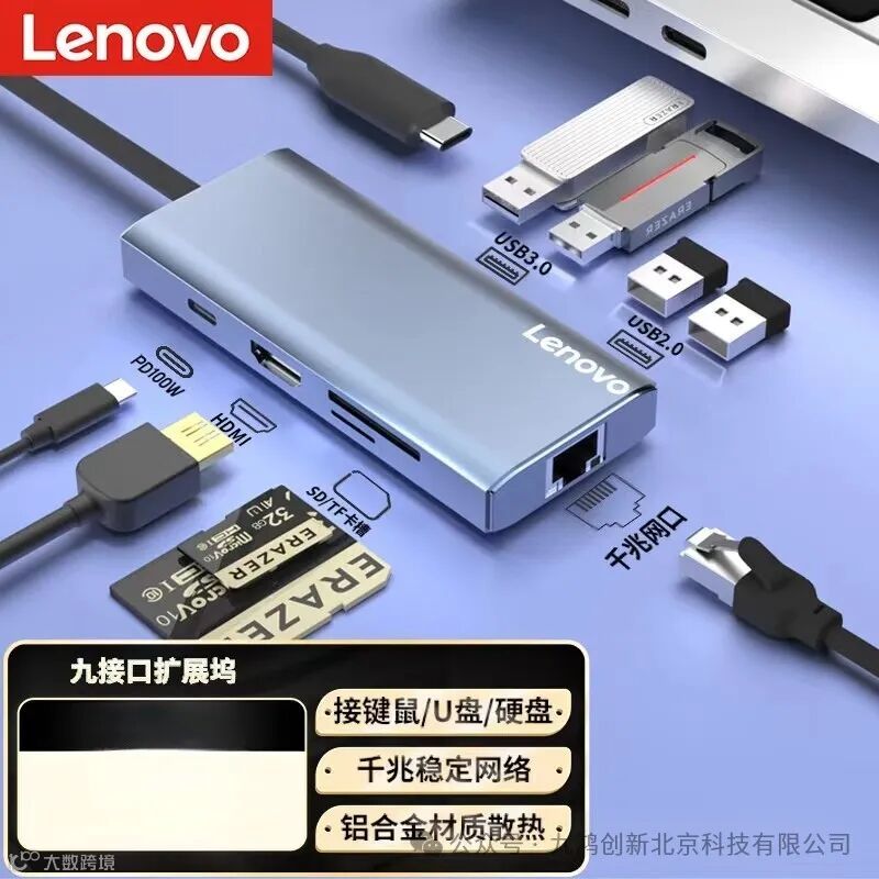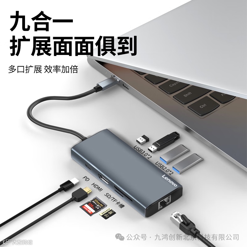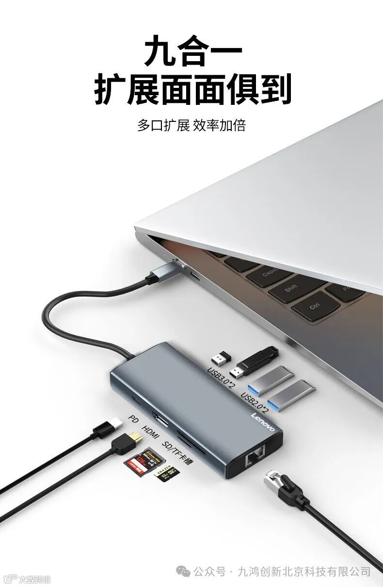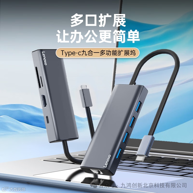 联想(Lenovo)Type-C扩展坞分线器高速拓展坞笔记本电脑延长线四合一转换器小新拯救者通用 9口F1-C09(100PCS/箱)