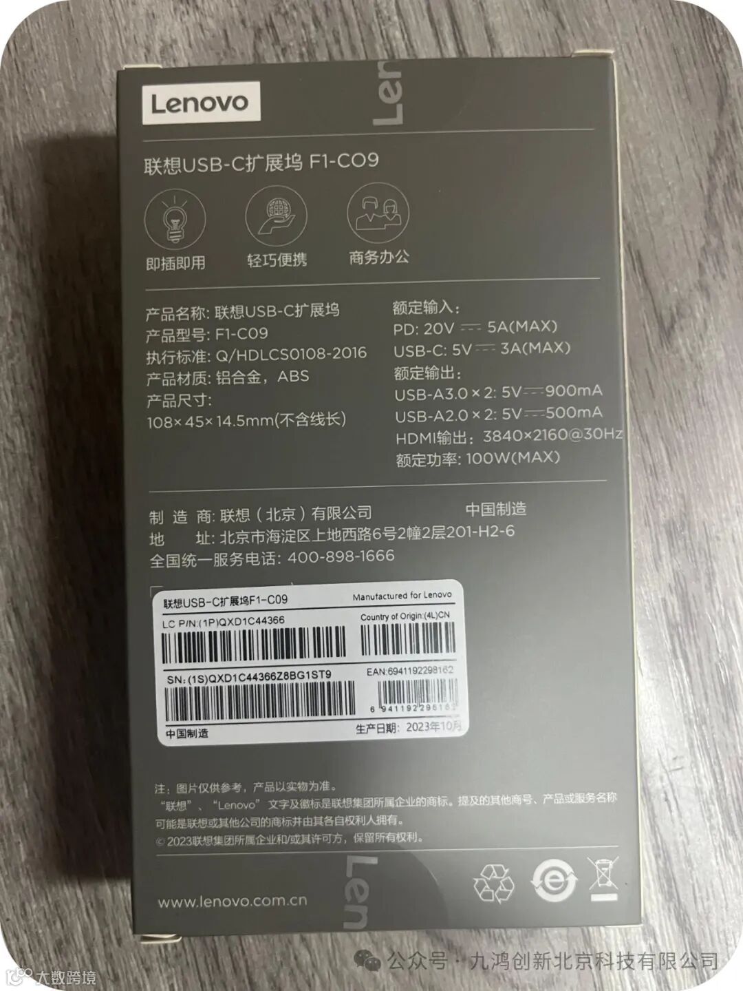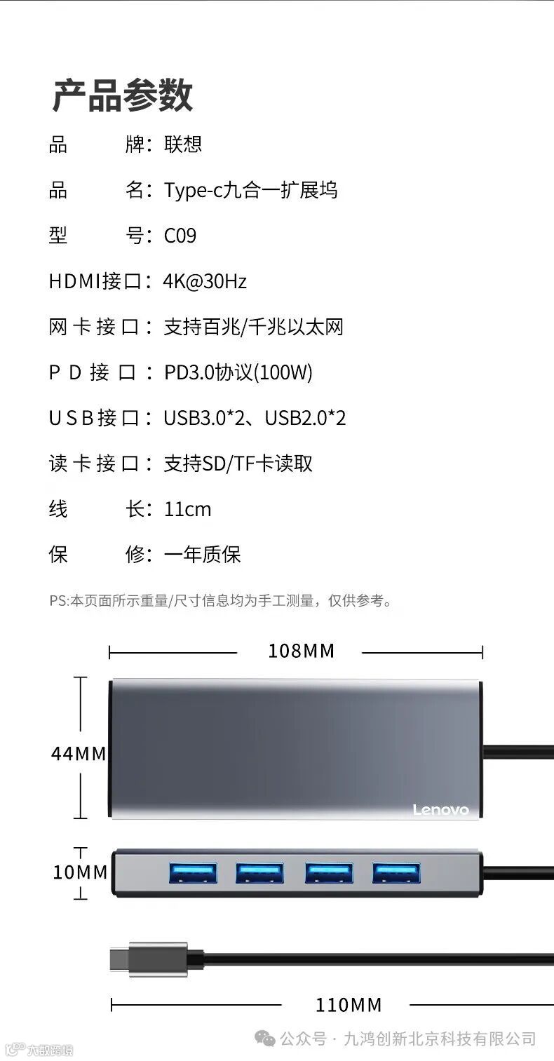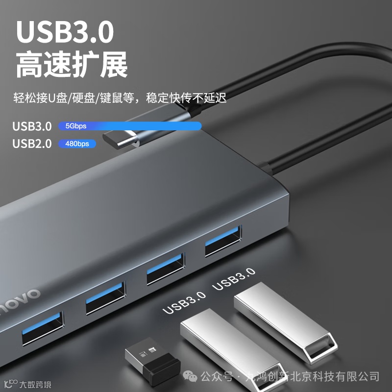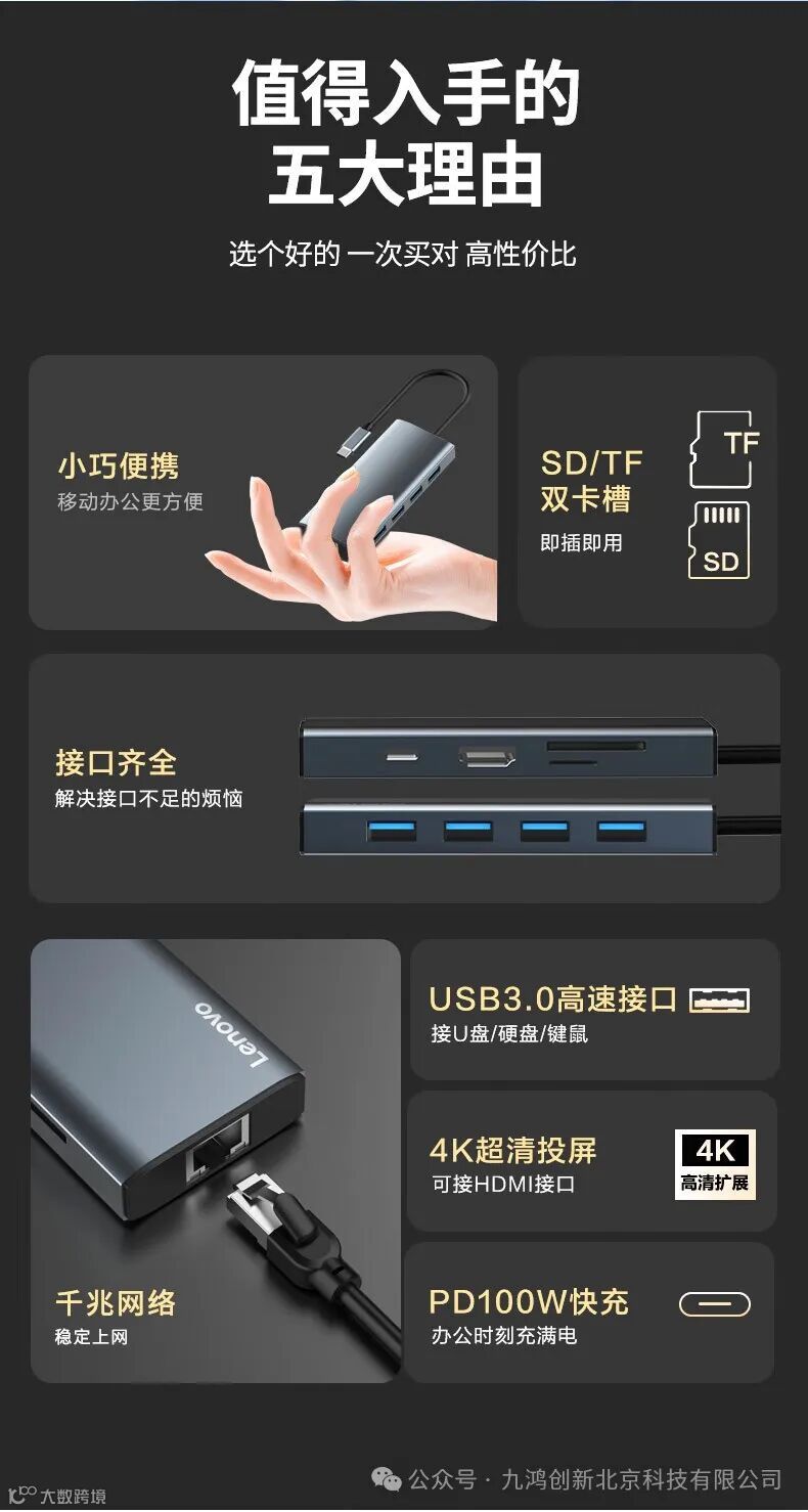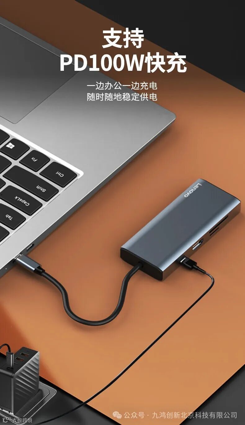 联想(Lenovo)Type-C扩展坞分线器高速拓展坞笔记本电脑延长线四合一转换器小新拯救者通用 9口F1-C09(100PCS/箱)