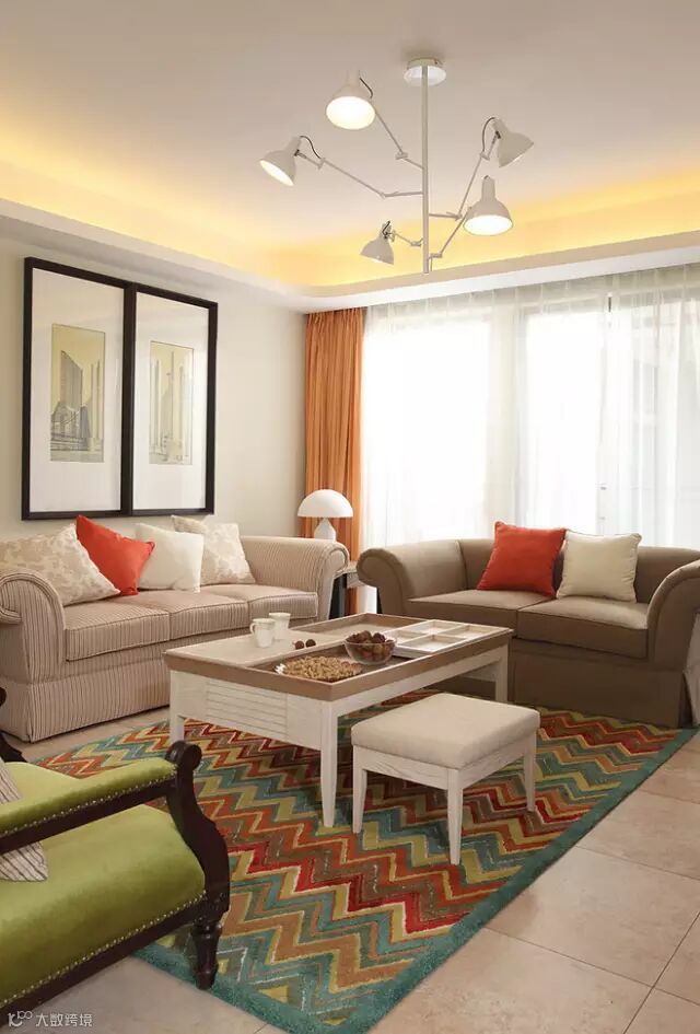 沙发背景不用太复杂,一组画就可以