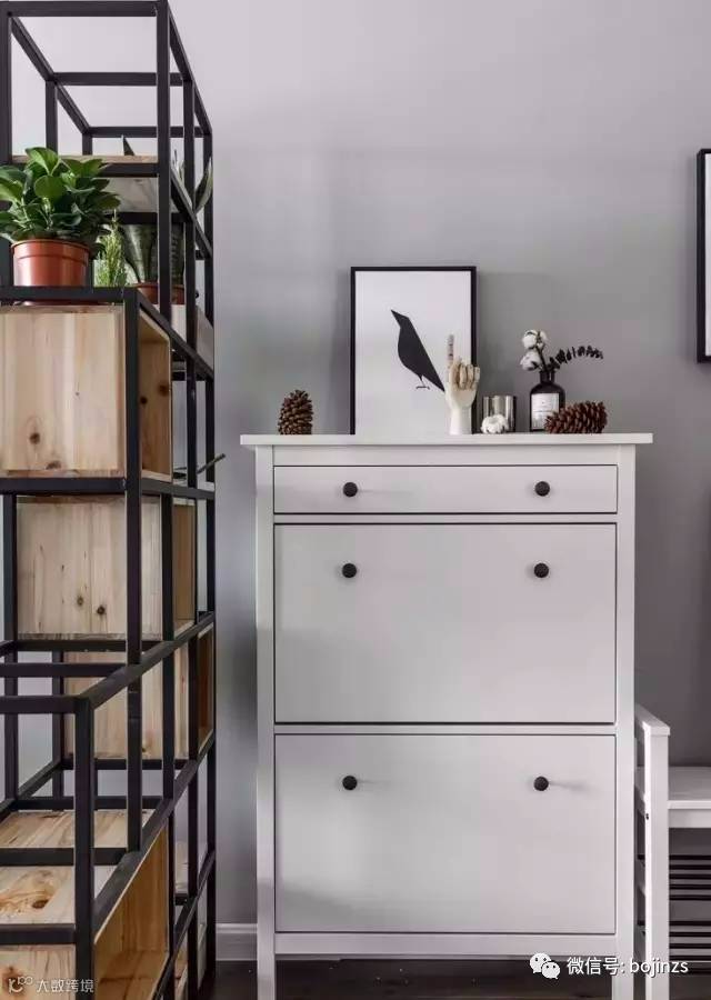 ▲镂空的博古架做隔断,摆上唯美的小鞋柜,1㎡的玄关,就参考这个做吧!