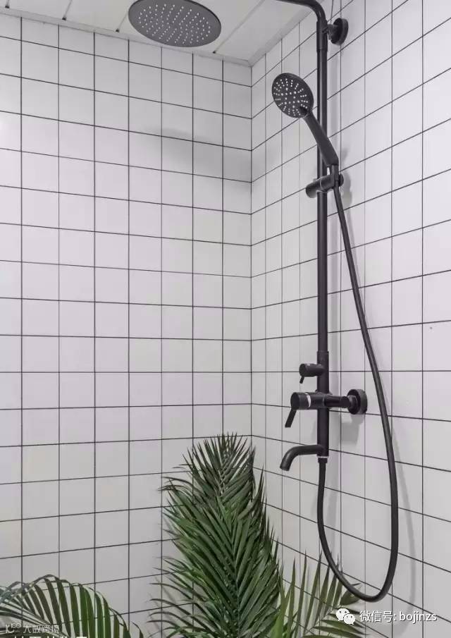 ▲黑白配色的卫生间显得摩登、时尚,养一盆喜阴、亲水的植物,不仅能净化空气,还能让卫生间变得绿意十足。