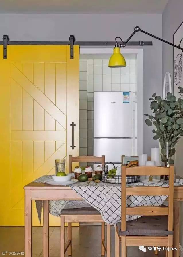 ▲餐厅一扇亮黄色的谷仓门非常吸睛,给餐厅注入了活力。