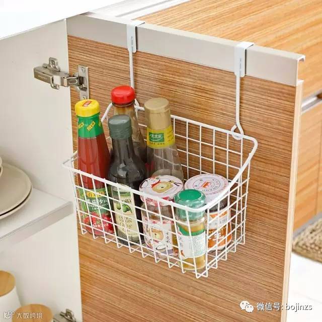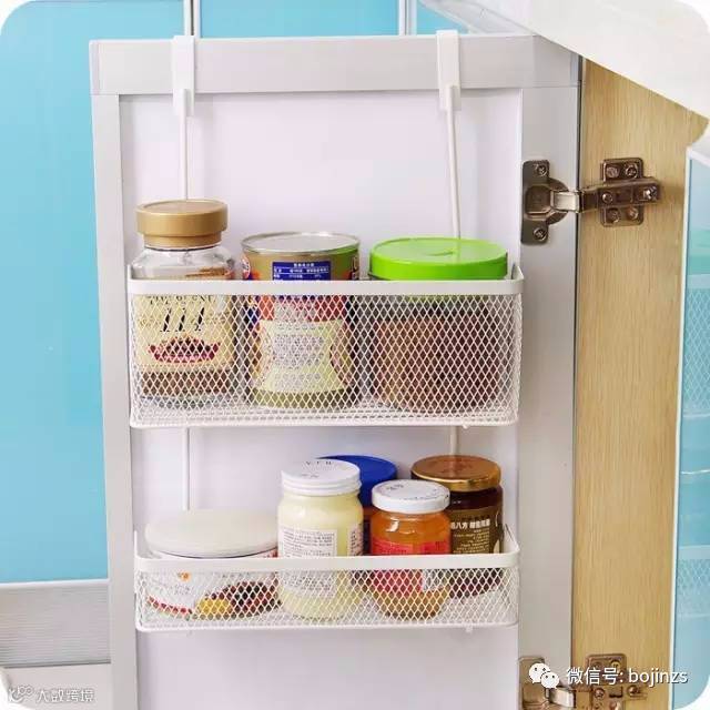 ▲橱柜门板内部可以选用收纳篮瓶瓶罐罐不用愁了。