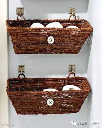 毛巾或是纸巾可以放在藤编筐中,清新淳朴气质令墙角增色不少哦。