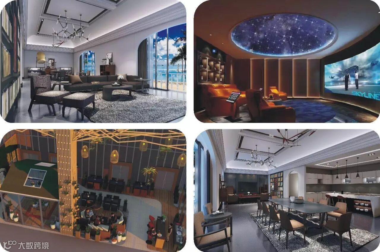 整合了国内外高端空调、新风、除尘、空气净化、热水、净水、软水、地暖、智能控制、智能影音、电动窗帘、灯光照明、冷藏收纳室、实木地板、大理石、地毯、艺术漆、墙布、铝合金门窗、铜门、卫浴、管材管件、橱柜、家私、园林景观等家电及家居产品。