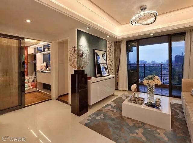 设计师整体的地面都是选择贴的是白色的瓷砖,很干净通透的。客厅的的门套和墙面都是现代简约的白色色调为主。