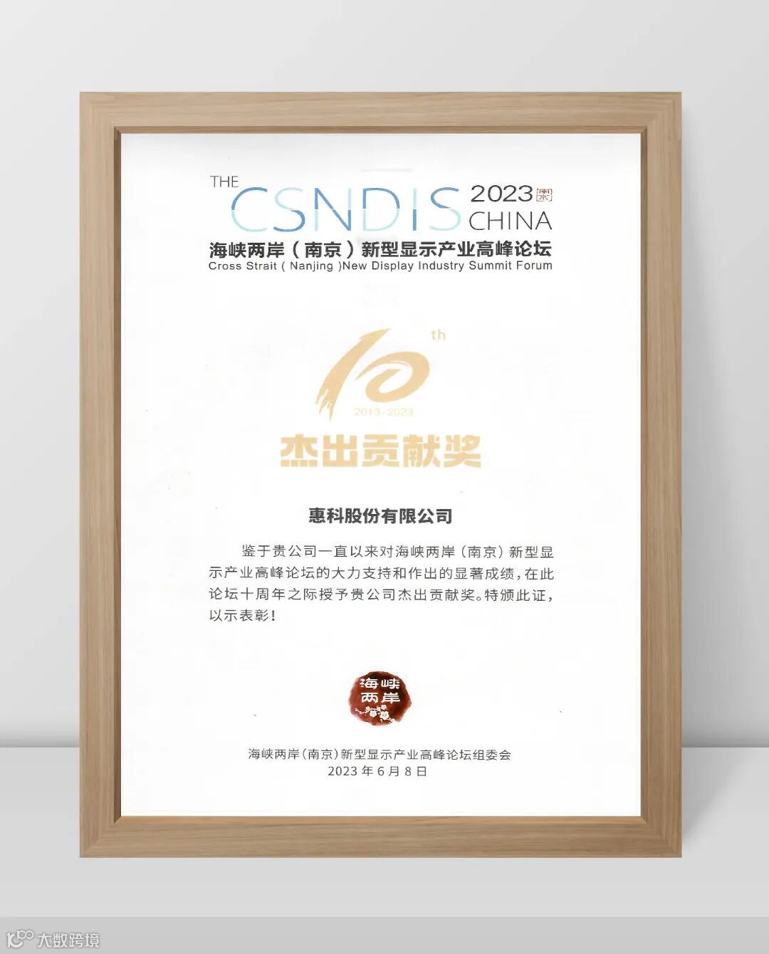 近日,第十届海峡两岸(南京)新型显示产业高峰论坛在南京隆重举行,国内外新型显示企业负责人,行业专家等近500人出席会议。大会由南京平板显示行业协会、台湾显示器产业联合总会共同主办,多位业界大咖以及国内外学术界专家,行业协会、上中下游核心企业代表参会并进行交流。惠科受邀出席参加大会,并荣获大会颁发的杰出贡献奖,共话新型显示产业创新发展。