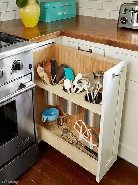 柜子间的缝隙还可以用来放刀具、放锅等~