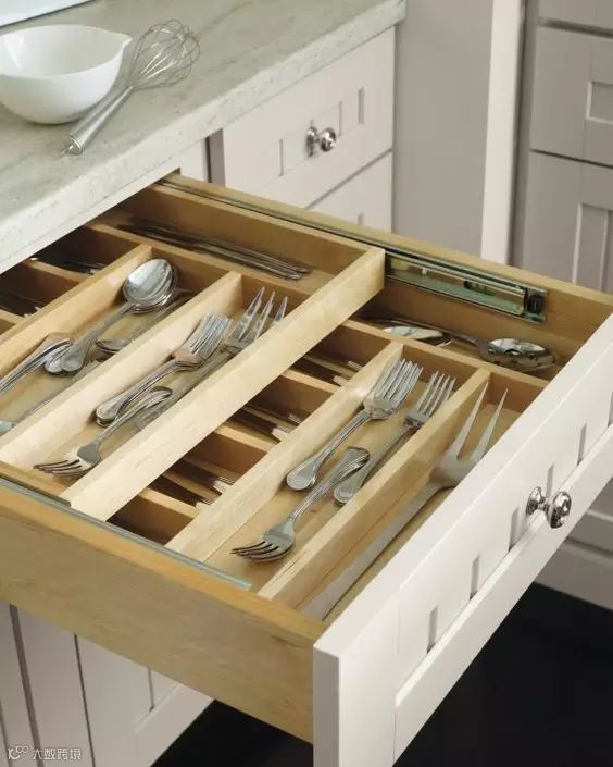 柜子留一个抽屉放刀叉,不管是插起来还是直接放置~这样是不是看起来方便了许多?