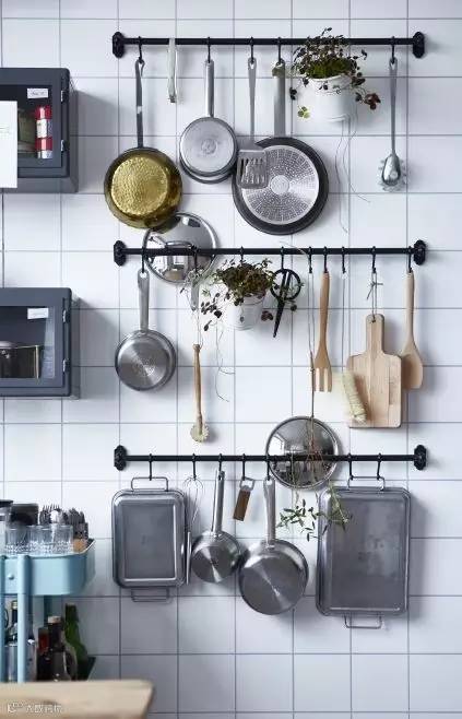 安一根不锈钢管也行,把锅一个个挂好,整齐!