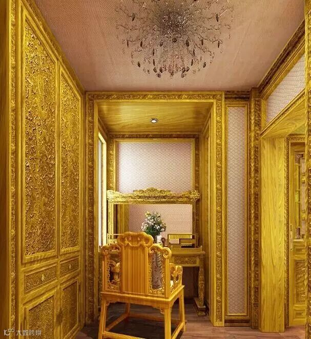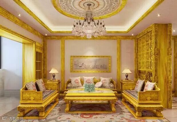 客厅都采用黄色搭配,真的有种住在皇宫的感觉!