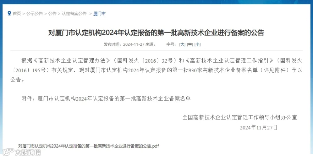 2024年厦门市第一批通过认定的