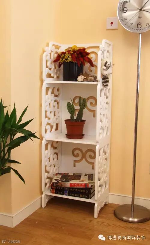 拐角置物架在《爱情公寓》中曾经出现过,放置在电视柜旁边,可以放置电视遥控器、影碟、充电器、绿植等。这种置物架不用特地选择与装修风格一致,一个几十块钱的简单的藤制置物架就可以了,非常百搭,也不会突兀。