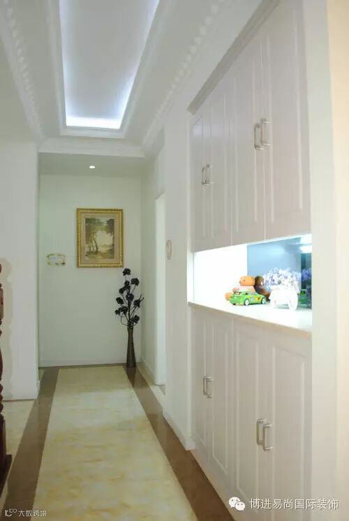 在大门的入口加一个小桌子,可以摆放平时出门要用的钥匙、雨伞、以及第二天出门要带的东西。有客人到来的时候,也可以在更换鞋子的时候把随身的包物搁置一下。也有一些业主会把门口的柜子做成鞋柜,下面安放鞋子,上面摆放一些工艺品,作为门厅一景。当然,也有一些设计师在设计门厅的时候,直接在门口装了一个内嵌式的空间放置钥匙等物品,也是非常便捷的。