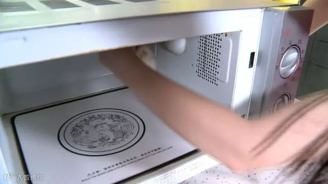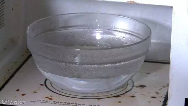 时间到,把微波炉打开,先让热气散一会,再把碗拿出来。这时微波炉内的污渍已经有些溶解了。