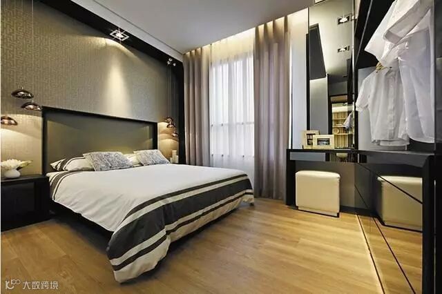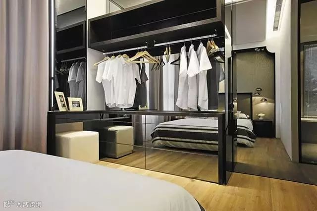 为了节省空间更是将卧室与衣帽间结合起来,各式的男士衬衫井然有序,可以看出业主一丝不苟的生活态度。遇见更美的自己!关注美容护肤百科mrhfbk66