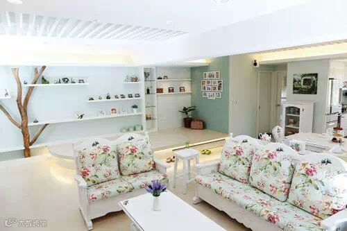 (3)材质:室内多用焚、织物、石材等天然材料,显示材料的纹理,清新淡雅;