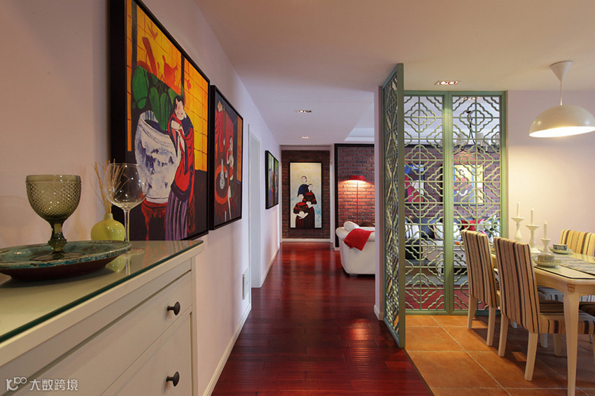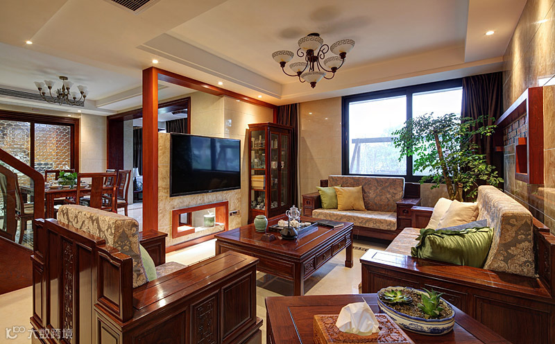 (3)材质:中国风的构成主要体现在传统家具、装饰品,需要注意的是:只要发挥各种建材的适当性,即使是使用玻璃、金属等现代建材,一样可以表现中式风格,中国传统室内陈设包括字画、匾幅、挂屏、盆景、瓷器、古玩、屏风、博古架等,追求一种修身养性的生活境界。