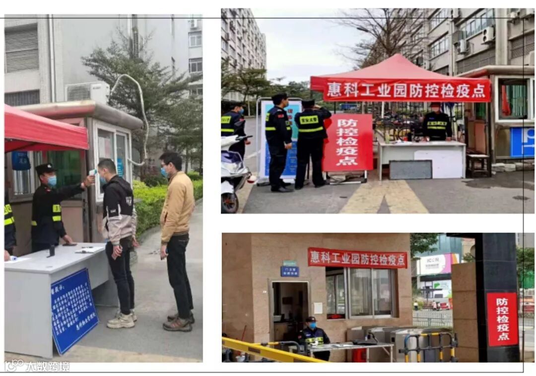 建立多个防控检疫点,在工业园区出入口进行防疫检查,对出入车辆及人员进行信息登记,配备红外线测温仪进行体温检测,并要求佩戴口罩。