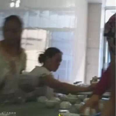 之后,记者发现餐具上出现了血迹,管理员就用布擦了血迹后,将其拿出。但之后,还是陆续出现了带有血迹的餐具没被发现,于是这些“带血”的餐具就被包装“过关”了。