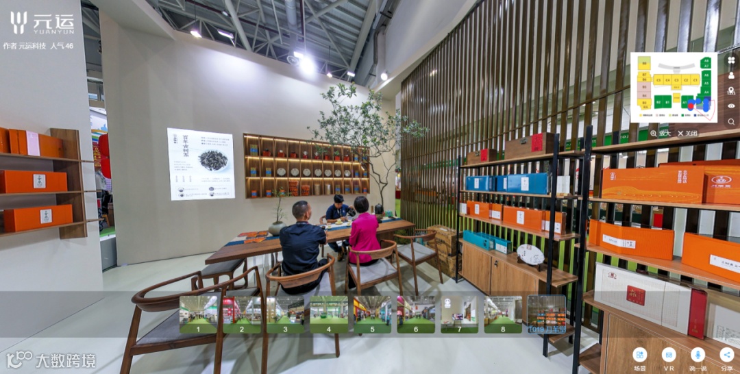 元运科技全景宣传方案,拍摄从入口到展位地点的展览路线全程,1:1生动还原线下实景,用户只需扫描二维码,就能获得实景地图,跟着画面走,轻松找到品牌展位!