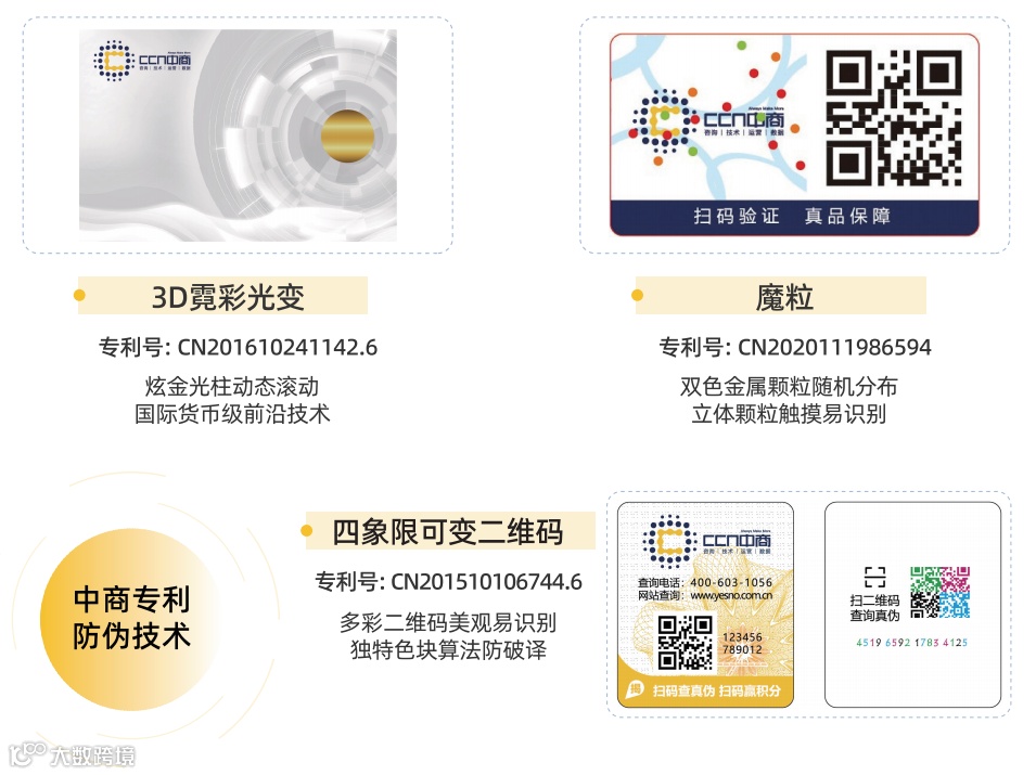 根据鉴别对象,基于物理、光学、数码等技术,构建显性与隐性防伪体系,构建基于视觉、触觉、听觉、互动鉴别技术的全方位防伪鉴别体系,并辅以防伪运营,真正帮助企业做到防伪。