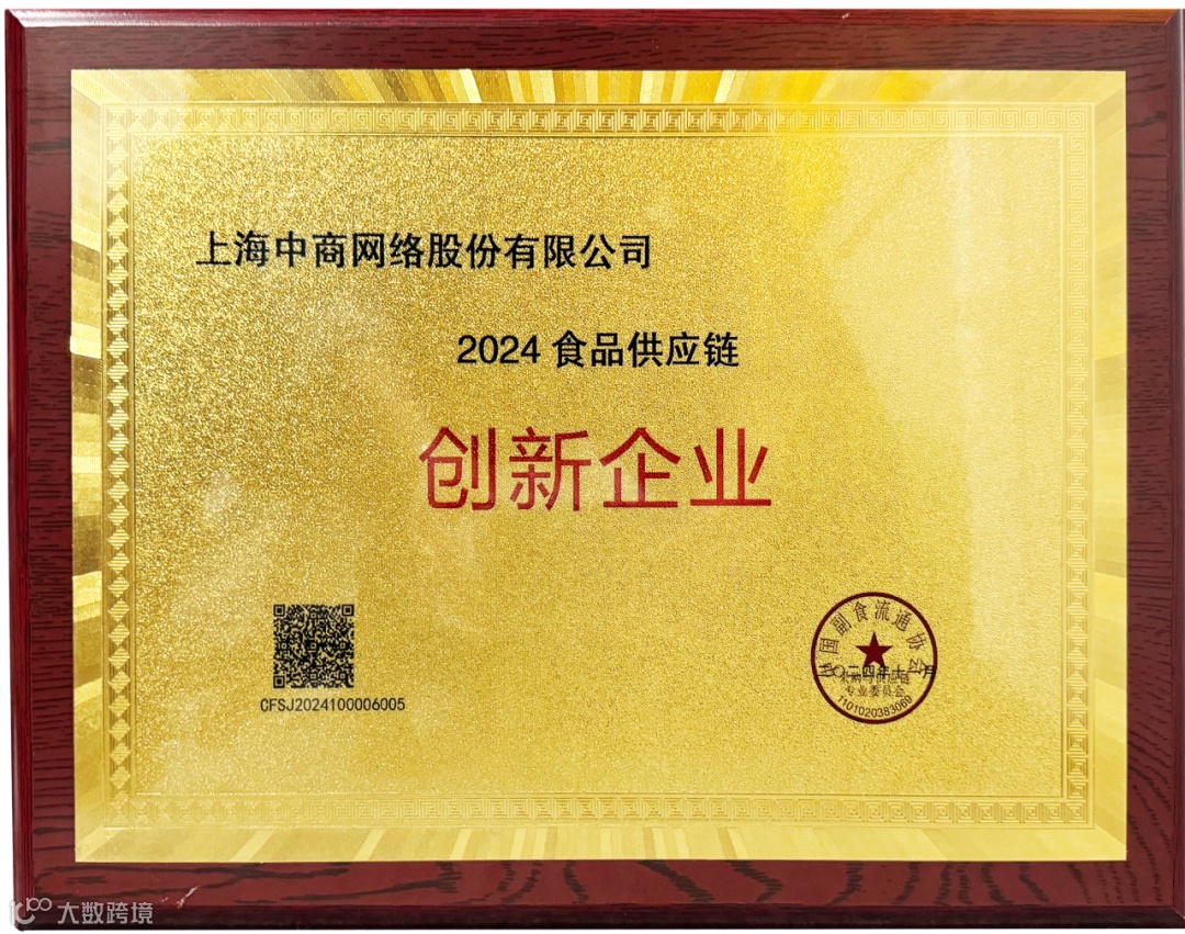 大会期间,嘉奖了在中国食品供应链领域做出杰出贡献的企业,上海中商网络股份有限公司凭借食品供应链数字化创新管理体系,荣获“2024食品供应链创新企业”称号。
