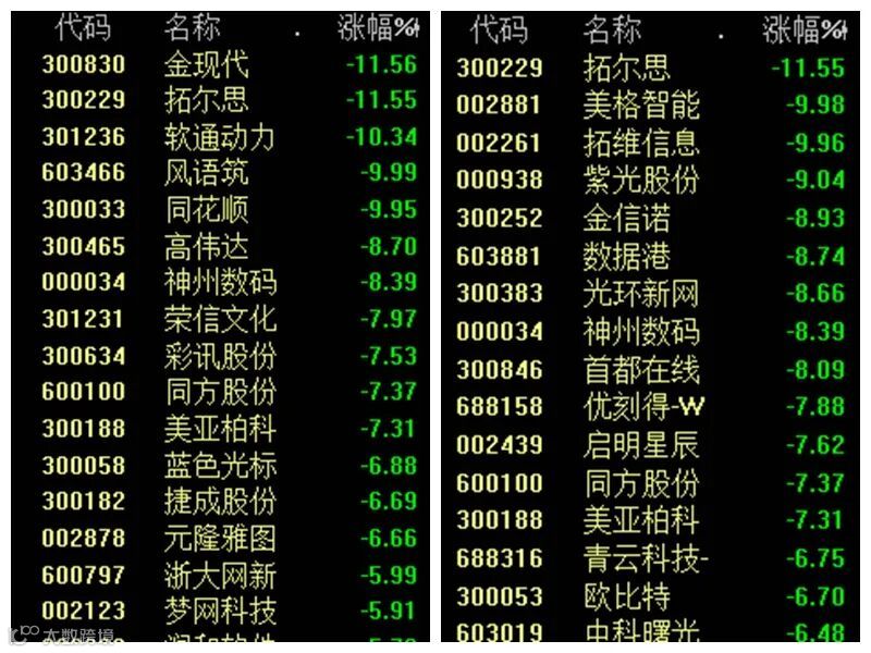 多只热门大牛股闪崩。工业富联、电魂网络跌停,紫光股份、大华股份、中科曙光盘中跌停。此外,浪潮信息、科大讯飞、三六零、万兴科技、汤姆猫、海光信息……上午都暴跌。