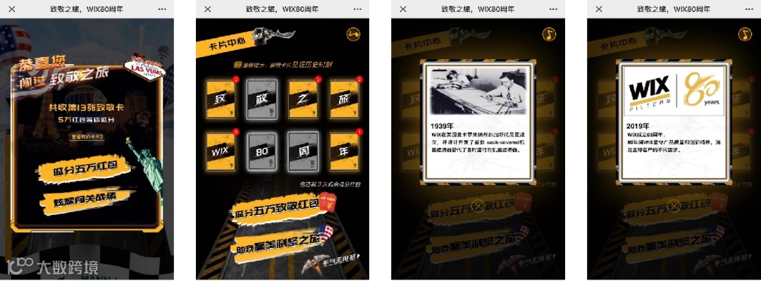 CCN中商曾为世界汽车零部件500强企业-WIX维克斯定制H5游戏,在吸引用户参与游戏的同时增加品牌露出,加大了品牌曝光。此外匠芯大师小程序配合开展关键人排名赛,邀请前三用户前往WIX发源地参观游玩,奖励机制对关键人呈正反馈,进一步加强了用户参与积极性。