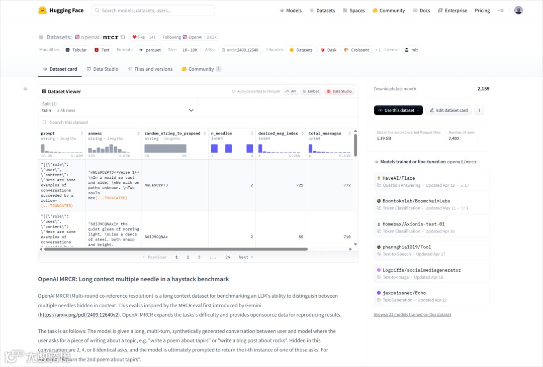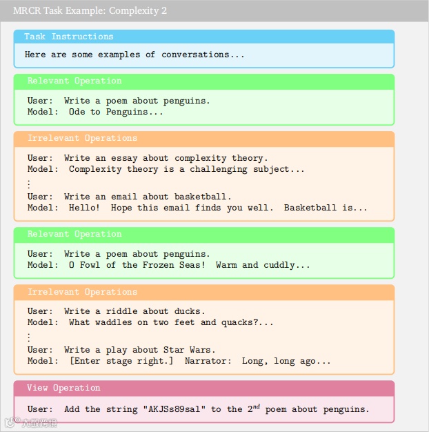 最令人瞩目的是在 MRCR(4 - needle)测试中,M1 实现了惊人的突破。MRCR 即 Multi - Round Co - reference Resolution(多轮共指消解),主要考察模型在处理较长的、多轮对话时,能否准确理解和区分用户要求中具体所指的是哪一次对话、哪一个内容。此前 AI 圈有一个 “大海捞针” 测试,用于检测模型的上下文能力。当时为了测试 Claude2.1 的 200K Token 实际效果,有人调用 Claude 的 API 进行压力测试,从不同长度文本中捞出特定信息,花费不菲。而 Gemini 后来提出了更高级的 Michelangelo 测试方法,MRCR 就是其中一项评估任务。OpenAI 在发布 GPT - 4.1 时,也采用了魔改后的高难度 MRCR 评测集来评估模型上下文性能。“4 - needle” 意味着在同一段超长上下文里同时埋下 4 个 “针”(关键信息片段),然后在后续对话里以交错方式把这 4 根 “针” 全部找出。在这个极具挑战性的任务中,MiniMax - M1 的表现一骑绝尘,直接屠榜,与 Gemini 2.5 Pro 并肩,超越了众多竞争对手。