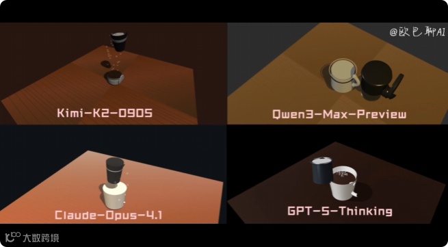 为了客观评估 Kimi-K2-0905 的真实水平,我们设计了涵盖不同难度和场景的对比测试,邀请了 Qwen3-Max-Preview、Claude-Opus-4.1 和 GPT-5-Thinking 三款主流模型参与较量。测试结果揭示了当前 AI 代码生成领域的技术分化,也凸显了 Kimi 的独特优势。