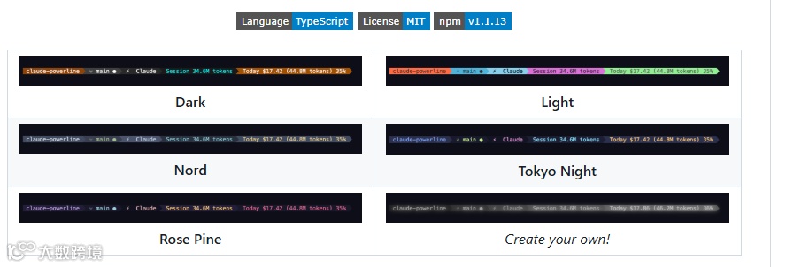 Claude Powerline 的高度个性化能力使其能够适应不同开发者的工作习惯和偏好。它支持 8 种预设主题(如 “Dracula”“Solarized”“GitHub Dark”)和自定义颜色方案,开发者可以通过修改配置文件调整状态栏的背景色、文字色和分隔符样式,例如将成本指标设置为黄色(预警)和红色(超支)的渐变显示,减少长时间编码带来的视觉疲劳。更重要的是,通过灵活的配置选项(包括命令行参数、环境变量和配置文件),开发者可以精确控制目录、模型等各类状态段的显示,比如选择启用或禁用成本、令牌、分支等信息的显示,调整它们的展示顺序,以及自定义样式细节,从而避免信息过载,专注于当前任务最相关的状态信息 —— 例如后端开发者可隐藏前端相关状态段,专注于 Git 和令牌信息。